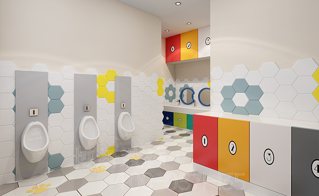 卫生间的装饰也是非常的卡通化,能够引起孩子们的好奇心以及对空间所产生的想象力。